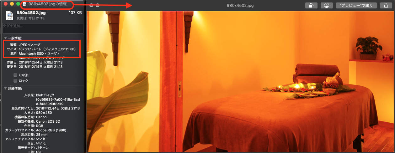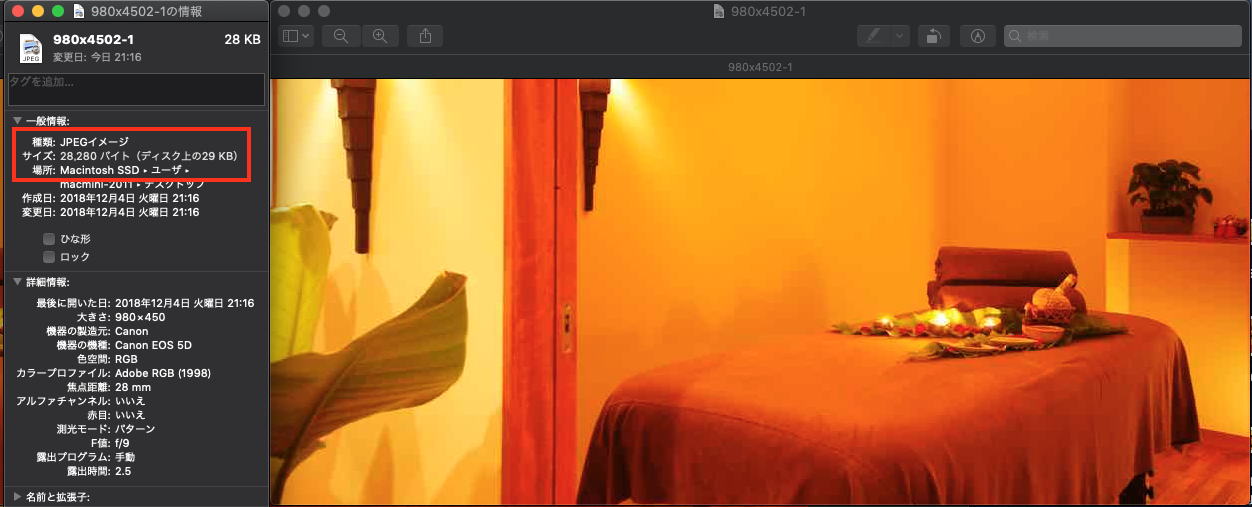 PCサイトの写真を綺麗に仕上げるには、写真のファイルサイズは大きいです。
